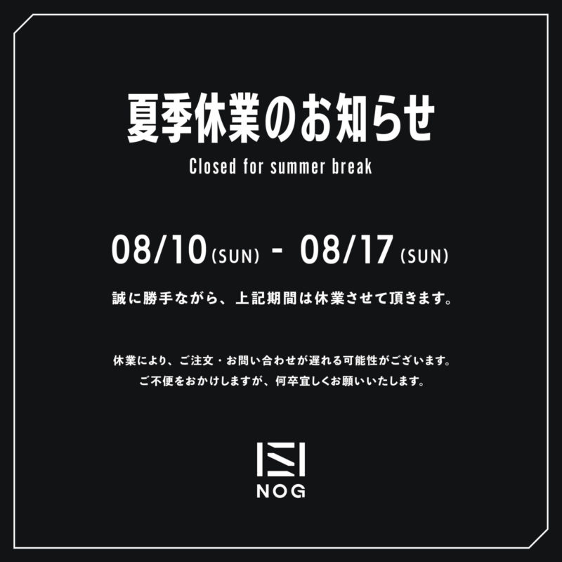 休業期間中のご注文・お問い合わせ等は、休業明けの8/18(月)以降順次ご対応いたします。